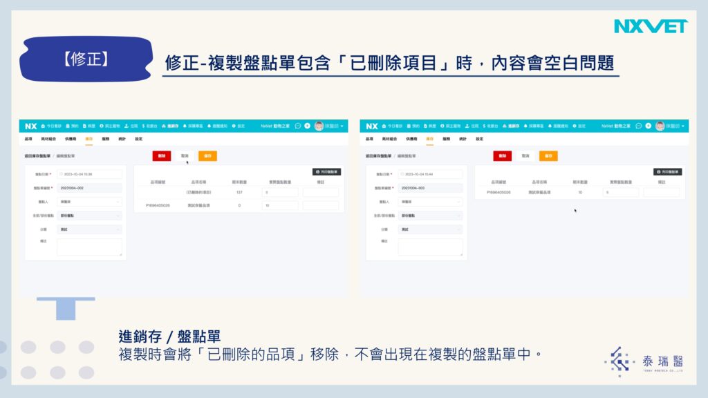 ※ 修正複製盤點單包含「已刪除項目」時,內容會空白問題